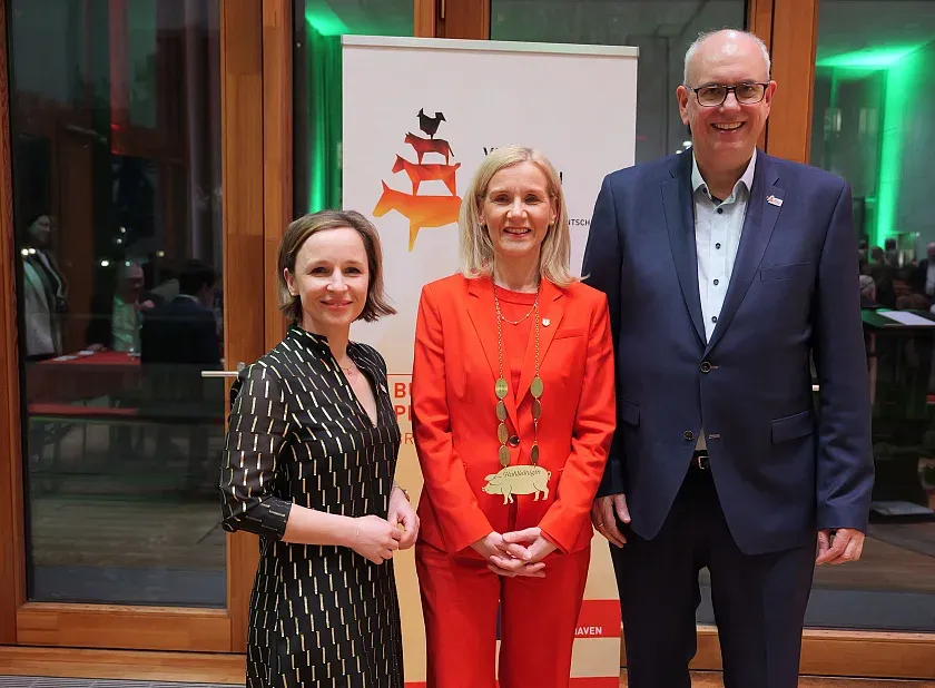 Auch die neue Kohlkönigin Prof. Dr. Jutta Günther richtete Worte an die Gäste: „Ich freue mich über diese Ernennung und verstehe sie als Einladung, Bremen hier in Berlin wissenschaftlich und kulturell präsent zu halten. Die Universität Bremen selbst ist, wenn man so will, ein Grünkohl unter den Universitäten: robust, widerstandsfähig und voller Potenzial.“