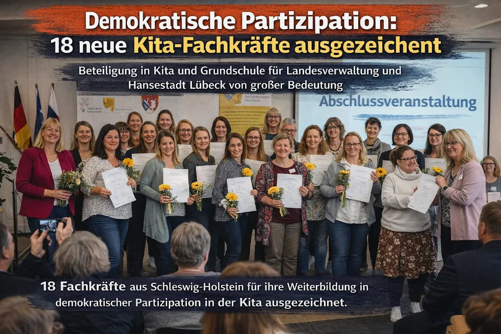 Schleswig-Holstein genelinde çocukların demokratik katılım hakkını güçlendirmeyi amaçlayan eğitim programı kapsamında 18 yeni “Demokratik Katılım Uzmanı” sertifikalarını aldı. Program, Lübeck’te düzenlenen kapanış etkinliğiyle tamamlandı.