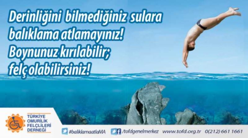 ‘‘Derinliğini bilmediğiniz sulara balıklama atlamayınız! Boynunuz kırılabilir; felç olabilirsiniz! ’’