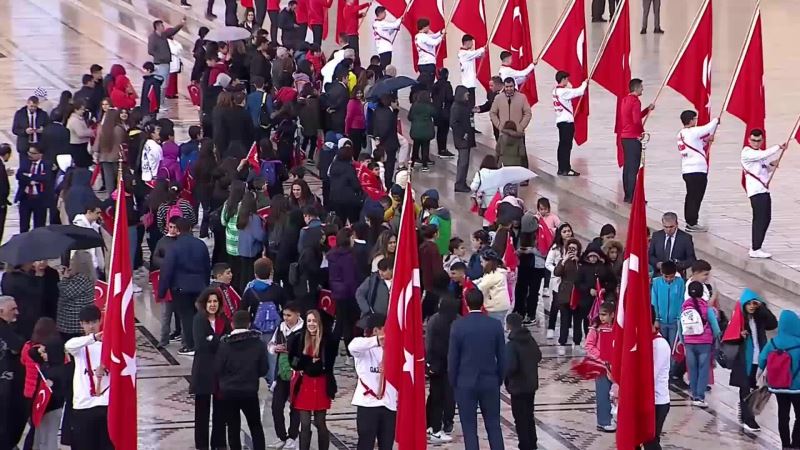 Aslanlı Yol'da yürüyen devlet erkanı; daha sonra Atatürk'ün huzuruna çıkarak mozolesine çelenk bıraktı. Saygı duruşu ve İstiklal Marşı'nın okunması sonrası Misak-ı Milli Kulesi'ne geçildi.