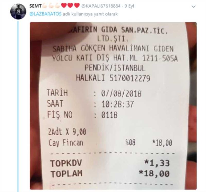 İstanbul'dahavaalanında aldığı 0.5'lik suya 6 lira ödeyen vatandaş, duruma sosyal medyadan ''Bu soygundur.'' diyerek tepki gösterdi. Vatandaşın tepkisine fiyatlardan rahatsız olan diğer kullanıcılar da destek verdi.