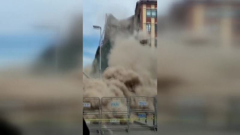 ÖNLEM ALINAN BİNA ÖĞLE SAATLERİNDE ÇÖKTÜ