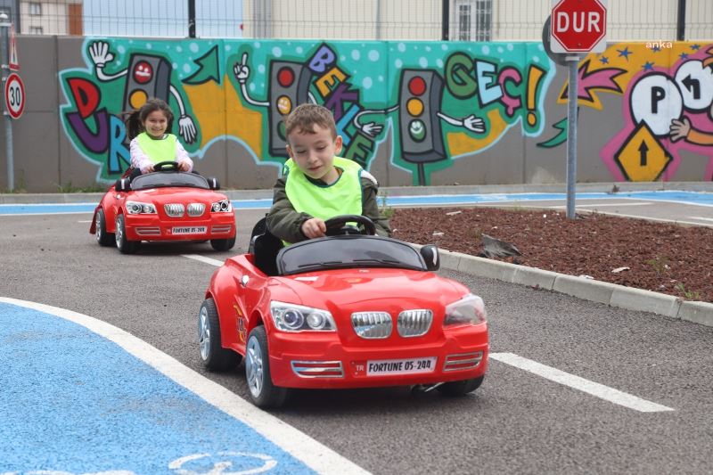 ‘6-12 Mayıs Karayolu Trafik Haftası’ dolayısıyla Kartallı çocuklar, önce trafik kurallarına dair teorik bir sunum izledi, ardından Trafik Eğitim Parkı parkurunda akülü araçları kullandı.