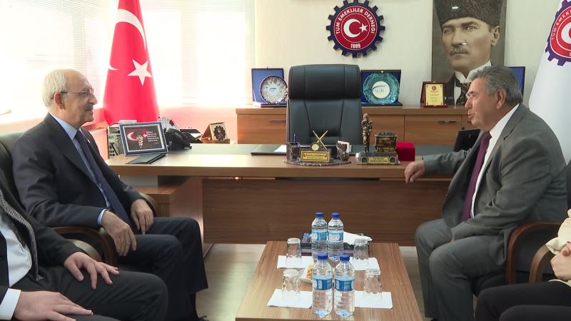 CHP Genel Başkanı Kemal Kılıçdaroğlu, Tüm İşçi Emeklileri Dul ve Yetimleri Derneği Başkanı Satılmış Çalışkan’ı dernek merkezinde ziyaret etti. CHP lideri Kılıçdaroğlu, ziyaretin ardından TÜM EMEK DER Başkanı Çalışkan ile ortak basın açıklaması yaptı.