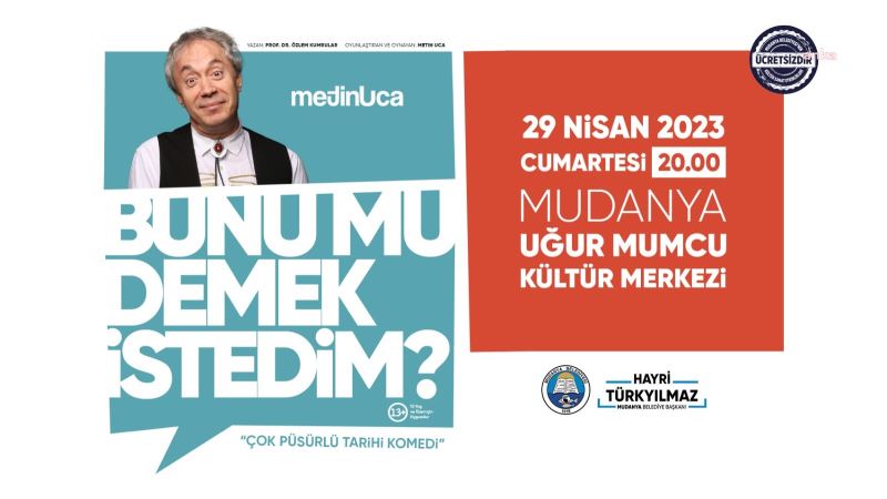 Mudanya Belediyesi, nisan ayının son haftasında iki etkinliğe ev sahipliği yapacak. Kültür sanat etkinlikleri kapsamında pek çok şair, yazar ve oyuncuyu ilçede ağırlayan Mudanya Belediyesi'nin yeni konuğu gazeteci, yazar ve tiyatrocu Metin Uca olacak. Metin Uca, ‘Bunu mu Demek İstedim’ adlı oyunu ile 29 Nisan Cumartesi günü Uğur Mumcu Kültür Merkezi’nde tiyatroseverlerle buluşacak.
