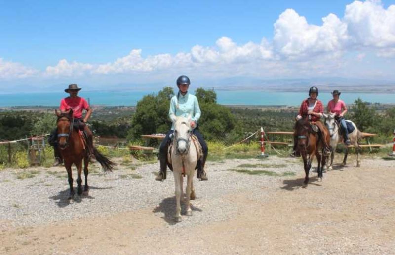 Beyşehir Gölü sahilindeki Vuslat Parkı'nda Türk bayrakları ile karşılanan atlı turist grubu, daha sonra ilçenin tarihi ve turistik mekanlarını ziyaret etti. Yat ile göl turuna katılan ziyaretçiler, Türk hamamı keyfi de yaşadı.