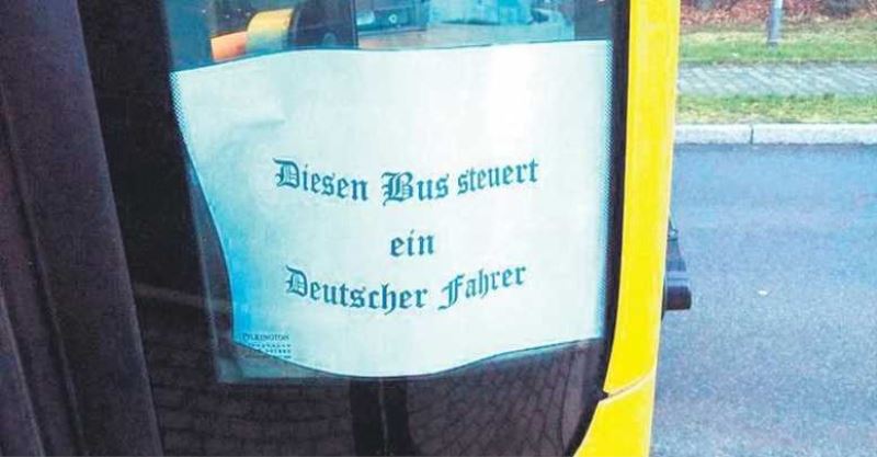 Almanya'nın Dresden kentinde görev yaptığı belediye otobüsünün kapısına eski Alman yazı karakteriyle "Bu otobüsü Alman bir şoför kullanıyor" yazan şoförün işine son verildiği bildirildi.