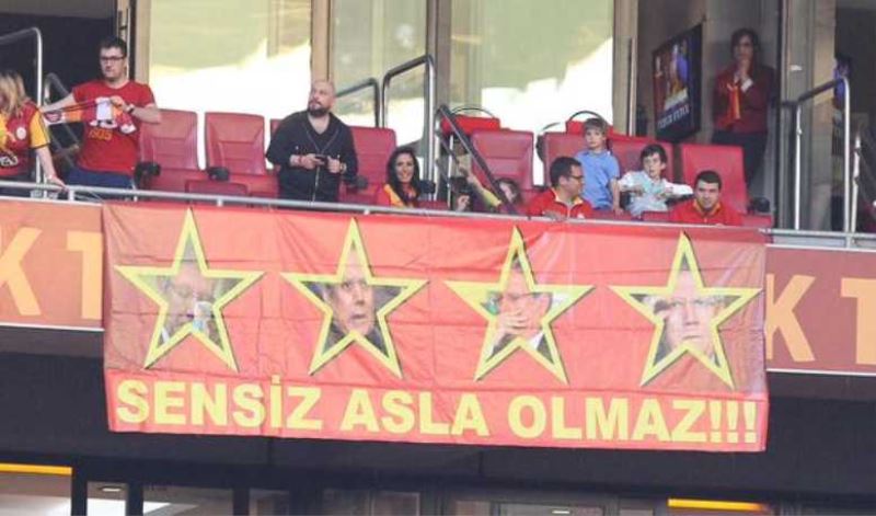 Üzerinde, "Sensiz olmaz" yazılı pankartta 4 yıldız bulunurken, bu yıldızların içinde de Aziz Yıldırım'ın resimleri yer aldı.