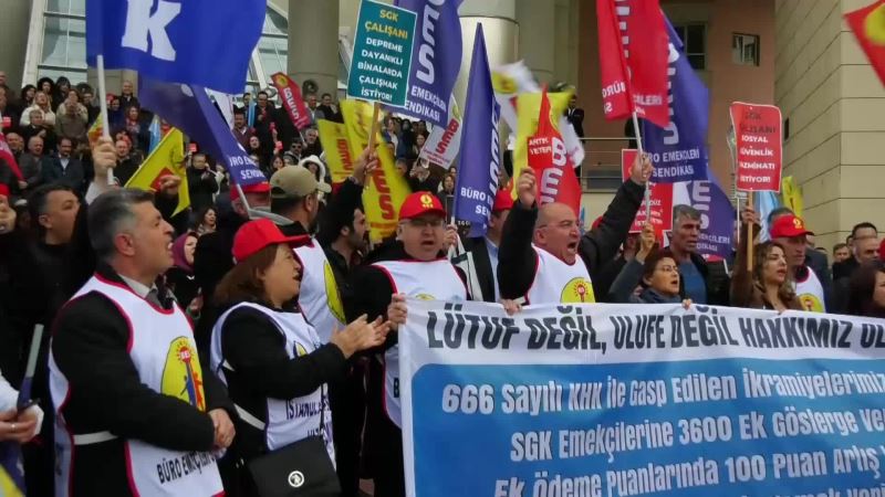 Kamu Emekçileri Sendikaları Konfederasyonu’na (KESK) BES üyesi kamu çalışanları, bugün Ankara’daki SGK Genel Müdürlüğü önünde toplanarak, 3600 ek gösterge, EYT ve yapılandırma gibi düzenlemeler nedeniyle artan iş yükü ve düşük mesai ücretlerine tepki gösterdi.