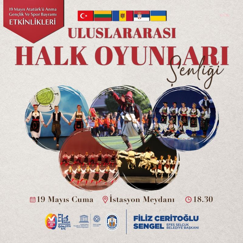 Efes Selçuk Belediyesi tarafından 19 Mayıs Atatürk’ü Anma, Gençlik ve Spor Bayramı dolayısıyla düzenlenecek Uluslararası Halk Oyunları şenliği kapsamında Sırbistan, Ukrayna, Moldova ve Litvanya’dan gelecek beş ekip, halk oyunları gösterisi sunacak. Şenliğe Efes Selçuk’tan da üç halk oyunu ekibi katılacak. Uluslararası Halk Oyunları Şenliği yarın saat 18.30’da İstasyon Meydanı’nda başlayacak.