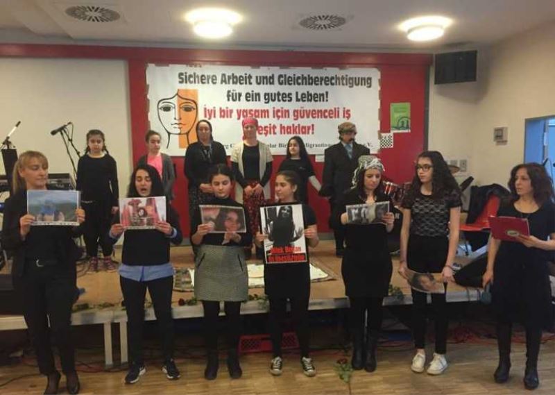Özbolat yaptığı konuşmada „Bizler Hamburg Göçmen Kadınlar Birliği olarak mücadeleyi sadece 8 Mart etkinlikleri ile sınırlı ele almıyoruz. Son bir yıl içinde savaşa, ırkçılığa, ayrımcılığa ve kadına şiddete karşı onlarca eyleme katıldık. Örgütlenmesinde yer aldık. Çevremizdeki kadınların duyarlılığını artırmaya çalıştık. Derneğimiz bünyesinde sevgili hocamız Şener Yıldız yönetiminde koro çalışmalarımız aksamadan sürüyor. Bir çok kültürel aktiviteler, geziler, değişik konulara ilişkin söyleşiler ve kahvaltılar gerçekleştirdik. Dernek olarak başta Kita ve Postane çalışanları olmak üzere bir çok işyerinde yaşanan sorunlara karşı işçilerin grev ve eylemleri ile dayanışma içinde olduk. Bu gün bu alanlarda mücadele eden kadınların aramızda olması bizi sevindirdi. DIDF gençliğin her yıl geleneksel olarak düzenlediği yıldızlar kampına destek olduk. Başta sunucularımız olan Heval ve Helin olmak üzere bir çok genç kadın bu kampların sayesinde bu gün aramızdalar ve 8 mart etkinliğini birlikte gerçekleştiriyoruz. Genç kadınların her zamankinden daha fazla katkısına ihtiyacımız var. Hamburg Göçmen Kadınlar Birliği olarak diyoruz ki sorunlarımızı ancak ortak hareket edersek aşabiliriz. Derneğimizin çalışmalarına katılarak, birlikte standlar açarak, kadın dergimizi daha fazla kadına ulaştırarak, görev alarak, üye olarak birleşmeye ve çalışmalarımızı güçlendirmeye çağırıyorum“ diye konuştu.