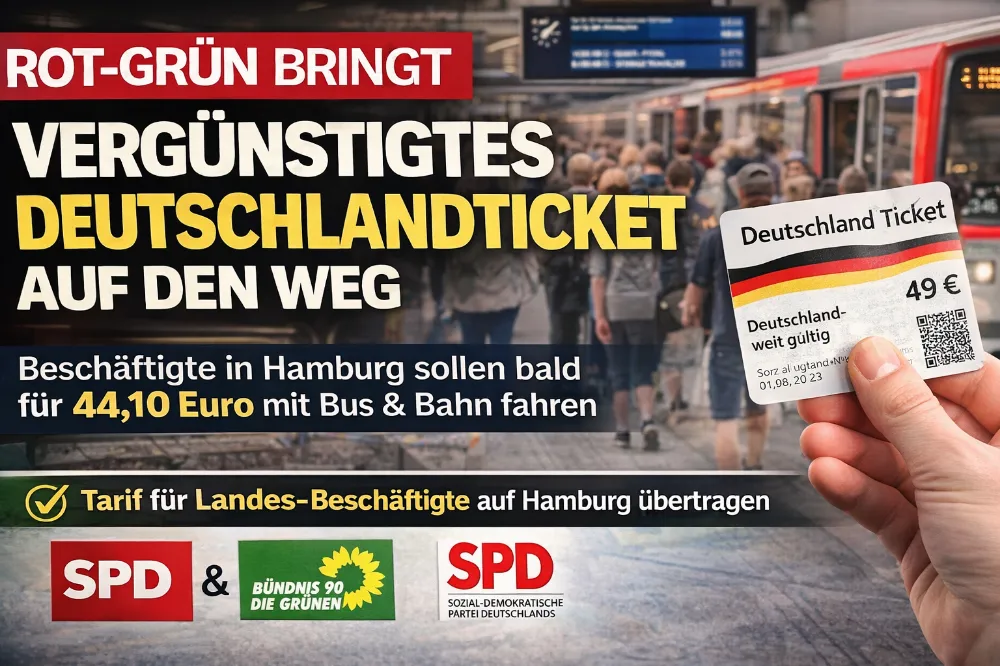 HAMBURG – Hamburg’da kamu çalışanlarını yakından ilgilendiren önemli bir ulaşım desteği gündemde. SPD ve Yeşiller (Rot-Grün) koalisyonu, Deutschlandticket için devlet çalışanlarına yönelik yüzde 25’lik bir sübvansiyon sağlanmasını öngören düzenlemeyi Hamburg Eyalet Parlamentosu’na sundu.