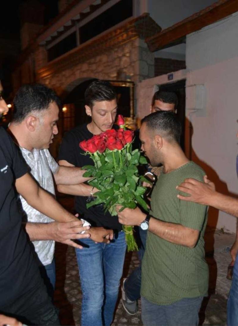 Yanında eşi Amine Gülşe bulunmayan Özil'in etrafını çıkışta seyyar çiçek satıcıları sardı. Bu sırada çantasından cüzdanını çıkaran Özil, bir an da sinirlenip etrafını saran çiçek satıcılarına sesini yükselterek, tepki gösterdi. Özil'in arkadaşları da seyyar satıcılara tepki gösterdi. Kısa süren gerginliğin ardından stresli olduğu gözlenen Özil, çiçek almadan beraberindeki arkadaşları ile eğlence mekanının önünden ayrıldı.
