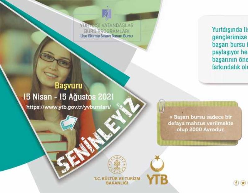 Yurtdışı Türkler ve Akraba Topluluklar Başkanlığı (YTB), yurt dışında eğitim hayatını sürdüren lise çağındaki başarılı gençleri ödüllendiriyor. YTB, “Yurtdışı Vatandaşlar Lise Bitirme Sınavı Başarı Bursu” programı kap