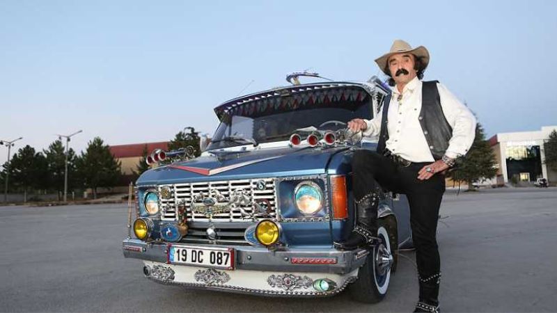 Mecitözü ilçesine bağlı İbek köyündeki ilkokulda sınıf öğretmenliği yapan 3 çocuk babası Sefer Karakaş, gerek giydiği kıyafetler ve taktığı aksesuarları gerekse tamamen kendisinin dizayn ettiği 1973 model minibüsüyle görenlerin ilgisini çekiyor.