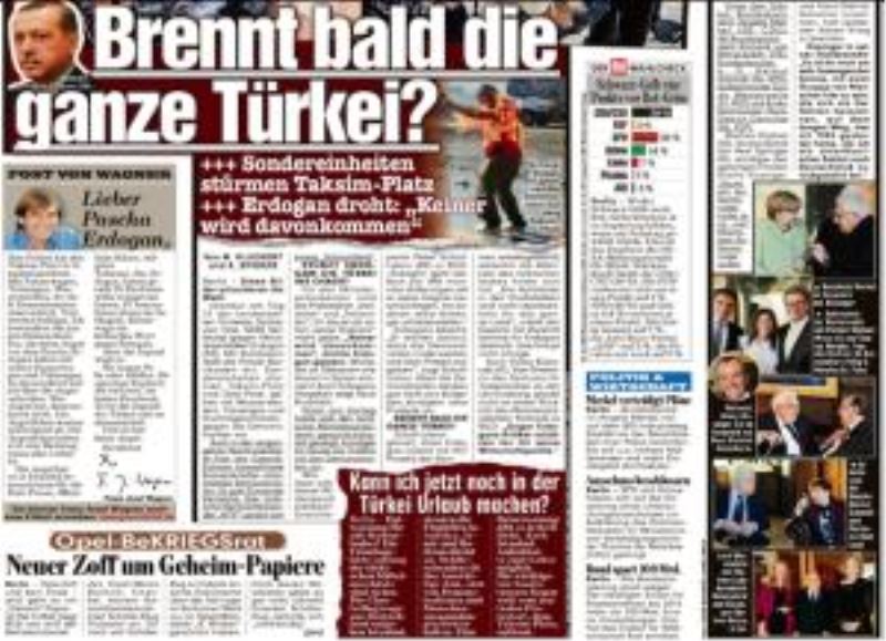 İstanbul Taksim’de dün yaşanan olaylar Alman basınında da büyük yankı buldu. Gazetelerin pek çoğu dünkü olaylara birinci sayfalarında yer verirken, Başbakan Erdoğan’ı hedef alan başlıklarla çıktılar.