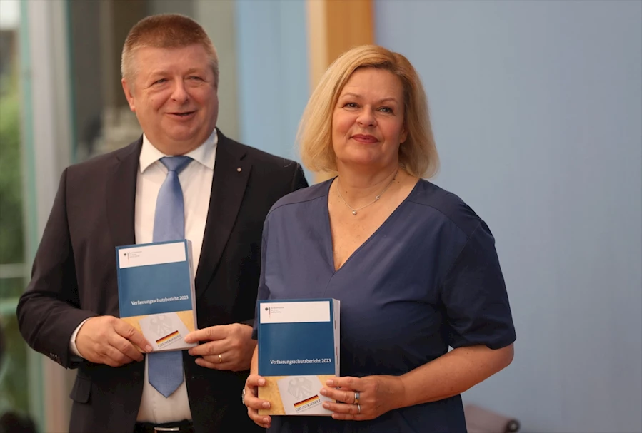 Almanya İçişleri Bakanı Nancy Faeser ve Anayasayı Koruma Teşkilatı (BfV) Başkanı Thomas Haldenwang tarafından başkent Berlin'de ortak basın toplantısıyla kamuoyuna açıklanan 2023 raporunda, aşırı sağcı grupların göç ve uluslararası çatışma korkularını kullanarak destek tabanlarını genişlettikleri vurgulandı.