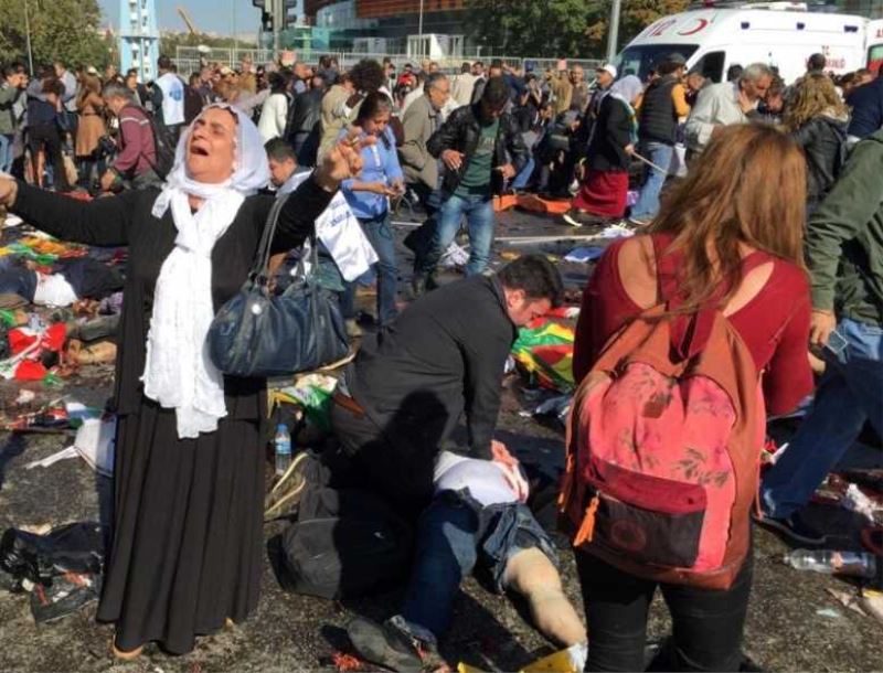 Açıklamaya göre, KESK, DİSK, TMMOB, Tabipler Birliği ve diğer sivil toplum örgütlerinin katılımı ile saat 09.30 itibarıyla Ankara Tren Garı önünde toplanmaların başladığı ve katılımın devam ettiği sırada, saat 10.04 civarında henüz sebebi belirlenemeyen iki ayrı patlama meydana geldi.