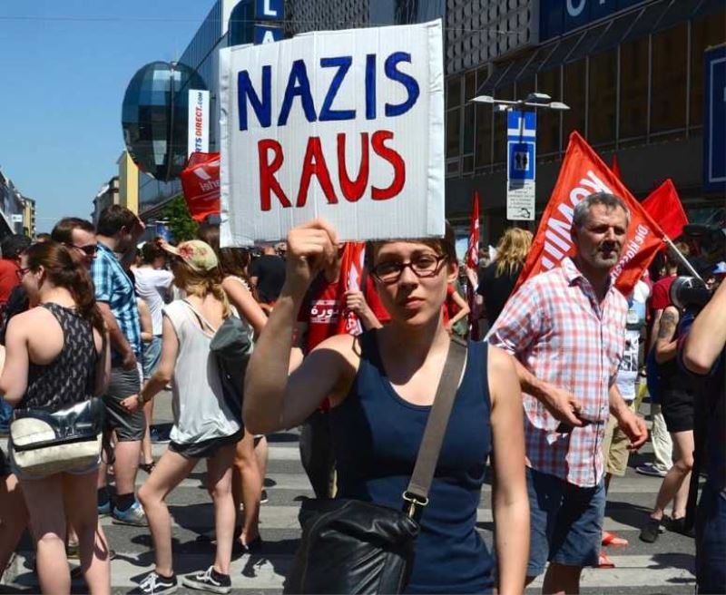 Sosyal medya aracılığıyla örgütlenen sol görüşlü 600 kişilik grup da yürüyüşü engellemek için aynı bölgede bir araya geldi. Gruptakiler, "Müslümanlar ve göçmenler hoş geldiniz" ve "Naziler ve ırkçılar dışarı" sloganları atarak, protestocuların yürüyeceği yolu kapattı.