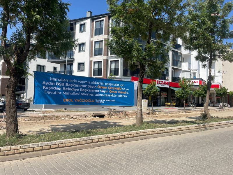 Davutlar Mahalle Muhtarı Erol Yağcıoğlu, Davutlar Mahallesi’nde yapılan çalışmalar dolayısıyla Aydın Büyükşehir Belediye Başkanı Özlem Çerçioğlu ve Kuşadası Belediye Başkanı Ömer Günel’e hazırladığı pankartla teşekkür etti.