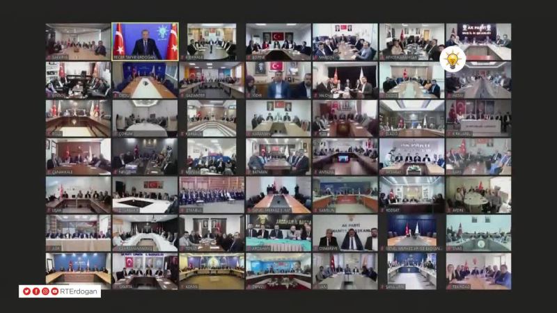 AKP Genel Başkanı ve Cumhurbaşkanı Recep Tayyip Erdoğan, parti genel merkezinde bugün partisinin il başkanları, milletvekilleri, belediye başkanları ve milletvekili adaylarına canlı bağlantıyla hitap etti.
