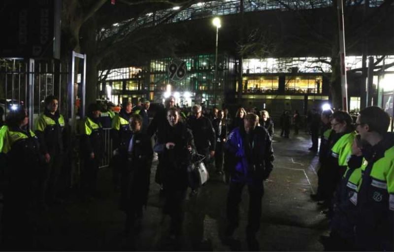 Police evacuated the 49,000-capacity HDI Arena, telling supporters not to panic and to return home.