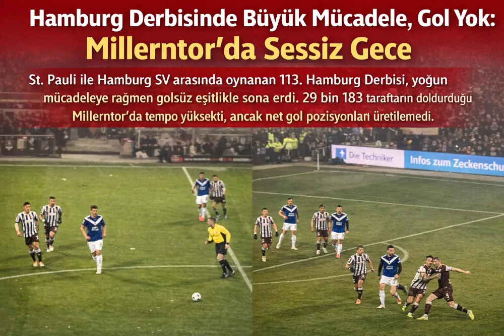 Hamburg – Almanya futbolunun en ateşli rekabetlerinden biri olan Hamburg Derbisi, bu kez skora yansımayan bir heyecana sahne oldu. St. Pauli ile Hamburg SV arasında oynanan 113. randevu, yoğun ikili mücadeleler ve sertlik dozu yüksek anlara rağmen golsüz sona erdi. Tamamı dolu Millerntor Stadı’nda oynanan karşılaşmada iki ekip de savunmada hata yapmadı, hücumda ise aranan yaratıcılık bir türlü bulunamadı.