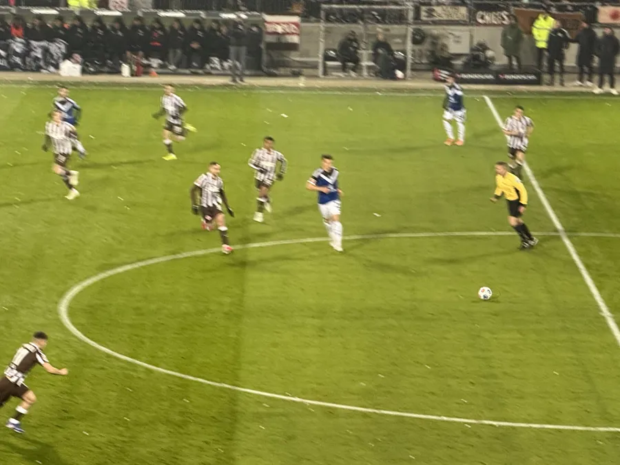 Hissedilen sıcaklığın eksi 10 dereceye yaklaştığı soğuk Hamburg akşamında, karşılaşma yüksek tempoyla başladı. Güney tribününde açılan dev pankart ve koreografiyle takımlarını karşılayan St. Pauli taraftarları, ilk düdükle birlikte Millerntor’u adeta ateşledi. Mücadelenin ilk dakikalarında sert fauller dikkat çekti. Adam Dźwigała’nın Røssing-Lelesiit’e yaptığı müdahale hem sarı kartla sonuçlandı hem de genç oyuncunun oyundan çıkmasına neden oldu.