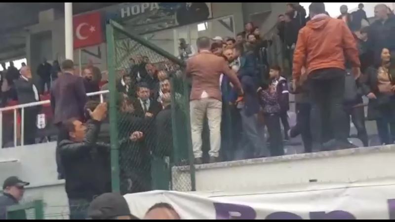 AKP Artvin Milletvekili Adayı Faruk Çelik, bugün 3. Lig’de oynanan Hopaspor-Tepecikspor maçında Hopaspor taraftarları tarafından protesto edildi. Hopaspor taraftarları, “Dışarı” ve “Mustafa Kemal’in askerleriyiz” sloganı attı. Protesto üzerine tribünden inen Çelik, maç bitiminde çevik kuvvet polisi eşliğinde stattan ayrıldı.