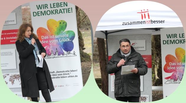 Ahlen’deki Anıt Ağaçlık’ta ırkçılıkla mücadele haftası çerçevesinde, Ahlen Belediyesi Uyum Ekibi, Uyum Meclisi ve Demokratie leben ve şehir lisesi öğrencileri tarafından tören düzenlendi.