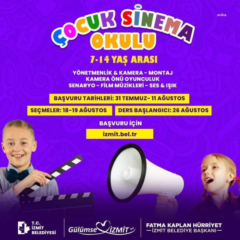 İzmit Belediyesi ve Çocuk Sinema Okulu ortaklığıyla çocukların içindeki yaratıcılığı ortaya çıkarmak amacıyla düzenlenen Çocuk Sinema Okulu’na 10 günlük sürede 628 başvuru geldi.