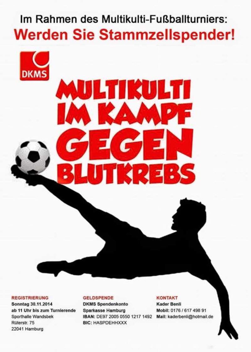 Alman Kemik İliği Bağışı Bilgi Bankası (DKMS) hastalara uygun kök hücre bulmak amacıyla Yunan, İran, Rus ve başka göçmen sivil toplum kuruluşları ve cemiyetlerinin desteklediği bir doku tipleme kampanyası düzenleyecek. Kampanya 30.11. 2