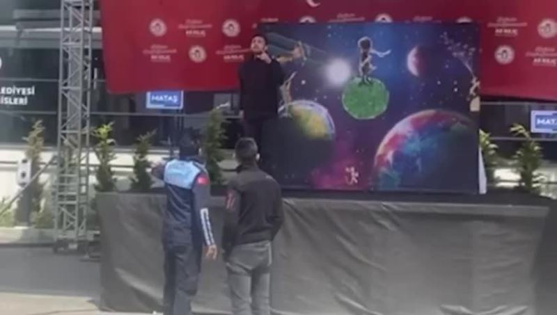 Maltepe Belediyesi'nin 23 Nisan Ulusal Egemenlik ve Çocuk Bayramı dolayısıyla düzenlediği şenlikte, kalabalığın arasından bıçak çekerek sahneye çıkan, yüzlerce çocuğun bulunduğu alanda kendisini durdurmaya çalışan zabıta görevlilerine saldıran Emre Baynaz adlı kişi, tutuklandı. Edinilen bilgiye göre, saldırgan, Anadolu Adliyesi'nde savcılığa verdiği ifadede “Oyunda Şamanizm söylemleri vardı, bundan rahatsız oldum” dedi.