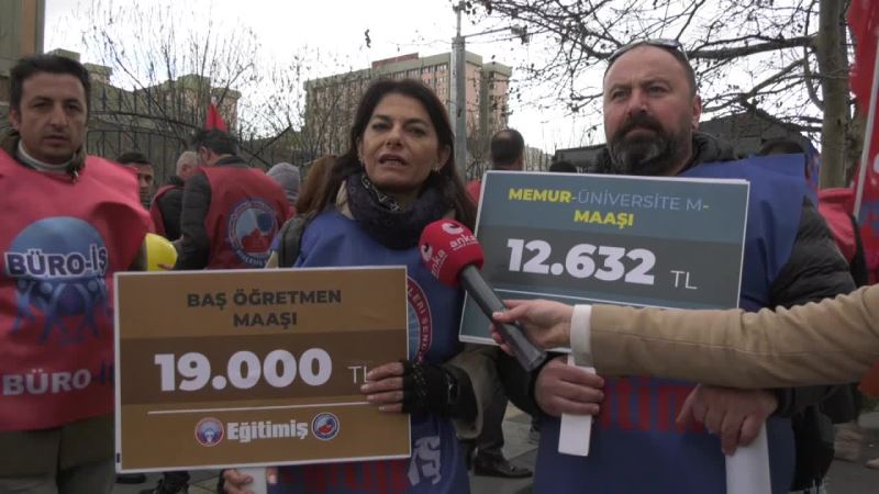 Çalışma ve Sosyal Güvenlik Bakanı Vedat Bilgin "öğretmen maaşının 20 bin üzerinde olduğu" yönündeki sözlerine öğretmen ve memurlardan tepki geldi. Eğitim-İş ile Büro Hizmet Kolu Kamu Çalışanları Sendikası (Büro-İş) Çalışma ve Sosyal Güvenlik Bakanlığı'nın önünde Bakan Bilgin'i protesto etti. Meslekte 17 yılını dolduran bir öğretmen, "Yeni başlayan bir öğretmen bugün 12 bin 400 lira bir ücretle başlıyor. 20 bin lira diyorsunuz. Ya aradaki farkı verin ya da kamuoyunda algı yaratmayın bakan bey. Ben 17 yıllık öğretmenim 13 bin 600 lira maaş alıyorum" dedi.