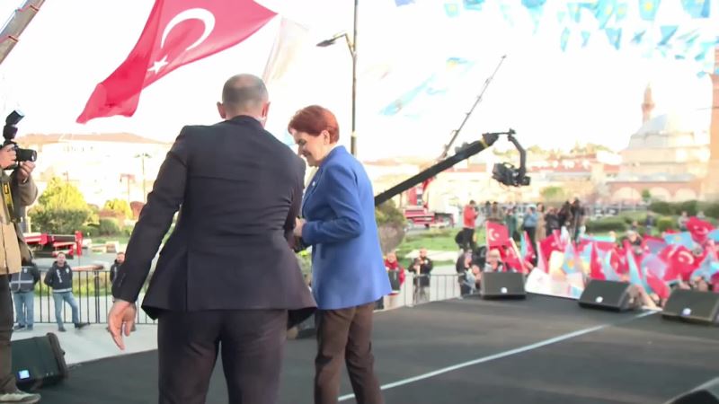 Bu şehir, bu Cumhuriyet’i kuran şehir. Siz kurdunuz, buranın iradesi kurdu. Dolayısıyla bu harami düzeni, bu hırsız düzenini, bu çalma düzenini, bu hak yeme, haram yeme düzenini, kul hakkı yiyen düzeni 14 Mayıs’ta değiştirecek miyiz? Sayın Kılıçdaroğlu’nu Cumhurbaşkanı yapacak mıyız? İYİ Parti’yi birinci parti yapacak mıyız? Allah razı olsun.”