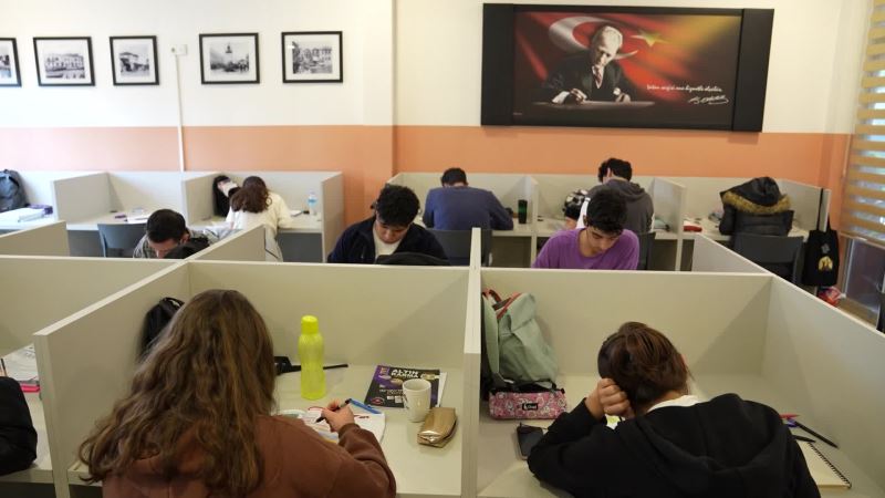 Mersin Büyükşehir Belediyesi’nin kent genelinde yurttaşların hizmetine sunduğu 9 adet okuma salonlarından biri olan ve Adnan Menderes Bulvarı Marina Kavşağı’nda bulunan Mersin Büyükşehir Belediyesi Öğrenci Merkezi Okuma Salonu’nda öğrenciler sınavlara hazırlanıyor.