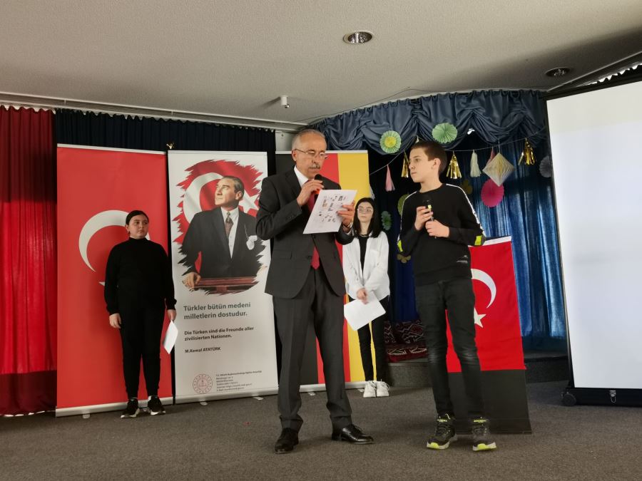 Moosburg–Freising Türkçe ve Türk Kültürü Öğretmeni Ali Naşit Aras, öğrencileri ve velilerinin katkıları ile hazırlanan program, başta Atatürk olmak üzere, şehitlere, Mehmet Akif Ersoy’a ve depremde hayatlarını kaybeden vatandaşlara yönelik saygı duruşunun ardından İstiklal Marşı’nın okunmasıyla başladı.