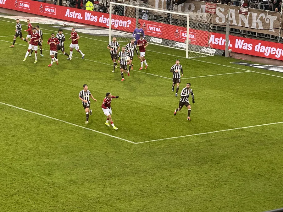 Eksikler nedeniyle kadro kurmakta zorlanan St. Pauli, buna rağmen karşılaşmaya son derece disiplinli ve istekli başladı. Tribünlerin tamamen dolduğu Millerntor’da oynanan mücadelede ev sahibi ekip, oyunun kontrolünü büyük ölçüde elinde tuttu. İlk yarıda Manolis Saliakas’ın 35. dakikada kaydettiği golle öne geçen St. Pauli, soyunma odasına 1-0’lık üstünlükle gitti.